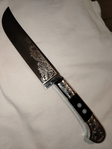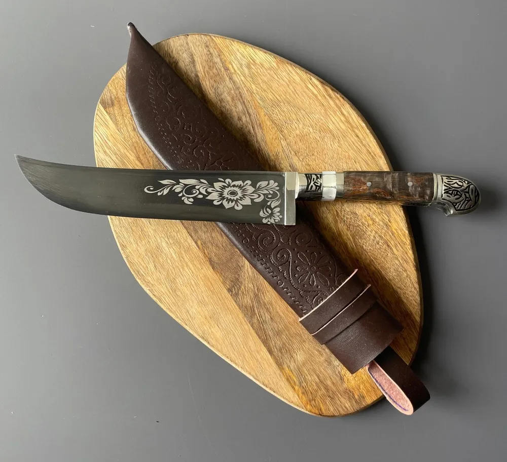Узбекский нож Пчак - национальный узбекский нож, имеет прямой широкий клинок из углеродистой стали клиновидного сечения с односторонней заточкой.