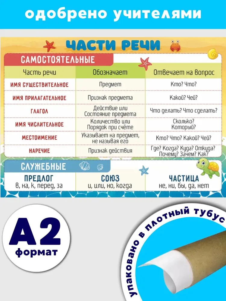 Обучающий плакат - это эффективное наглядное пособие, помогающее детям освоить базовые понятия русского языка в увлекательной форме. Материал разработан с учетом возрастных особенностей младших школьников и обеспечивает комплексный подход к изучению частей речи.