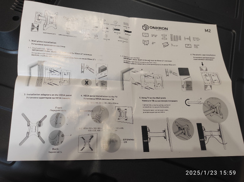 Кронштейн для телевизора, комплект ключей и крепежа для установки ТВ, система организации проводов, подробная инструкция на русском языке