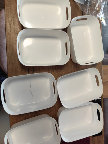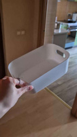 Размер одного контейнера 20*14*7 см. Органайзеры для мелочей IKEA могут использоваться для хранения и организации различных предметов, выполнены в минималистичном стиле. Контейнер для хранения – это отличный способ сохранить порядок в ванной комнате, на кухне или на туалетном столике. Его глянцевая поверхность не впитывает запахи и легко моется. Коробки оснащены удобными ручками и фиксаторами на дне, благодаря которым они не скользят на поверхности. Органайзер кухонный можно использовать в холодильнике. Органайзер для кухни имеет универсальный размер, что позволяет создать компактную систему хранения. В косметический контейнер можно аккуратно сложить косметику, кисти для макияжа, баночки с кремами и флаконы с духами. Используйте бокс для хранения женских аксессуаров, бижутерии, лаков для маникюра или иных маникюрных принадлежностей. Органайзер для лекарств изготовлен из полипропилена, который устойчив к сколам и трещинам, гибкий и высокопрочный. Органайзер для ванной комнаты подходит для размещения полотенец и бытовой химии. Кейс можно использовать в детской комнате для организации пеленального столика, хранения подгузников, бутылок или игрушек. Их можно задействовать для хранения канцтоваров, документов, книг и тетрадей. Канцелярский органайзер наведет порядок на рабочем столе. Еще одно применение ящиков с ручками из пластика — использование для кухни и холодильника. Вы можете использовать кухонный органайзер для хранения лекарств, продуктов, специй и приправ и других необходимых мелочей, чтобы организовать порядок на кухне. Органайзер может быть установлен на полке, в шкафу, на столе или в ящике. Является идеальным решением для путешествий и пикников, позволяет организовать хранение еды, одежды, игрушек в дорожных условиях. Можно использовать как дачный кейс для хранения садовых предметов и рассад. Является аналогом контейнеров от бренда ИКЕЯ.