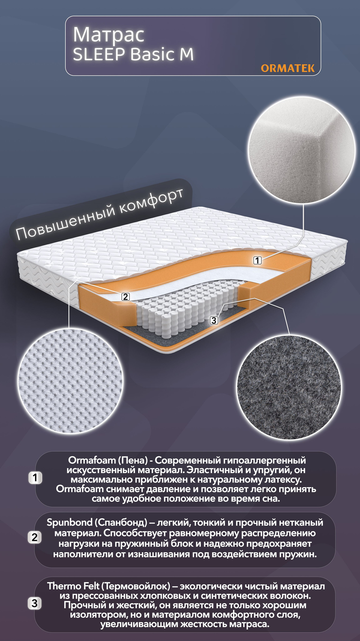 Орматек Матрас SLEEP Basic M, Независимые пружины, 80х200 см, Односпальный двусторонний анатомический #1