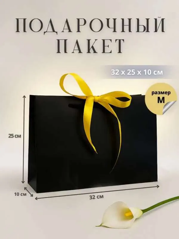 Наш большой пакет идеально подойдет для создания незабываемого впечатления. Подарочная упаковка черного цвета отлично сочетается с любыми декорациями и атрибутами праздника. Подарите своим близким не просто сюрприз, а настоящий праздник с помощью этого стильного и практичного решения.