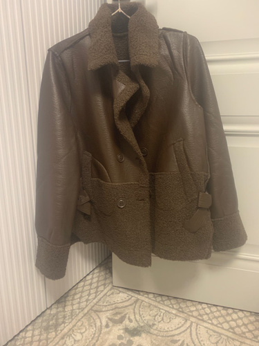 отличная дубленка, двухсторонняя,за такие деньги вообще огонь, мой размер 48-50, купила 52 на футболку или танковку как раз, если на толстую кофту то надо брать размер больше