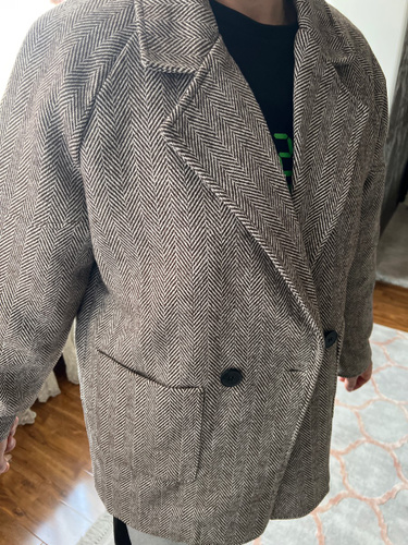 Товар шёл больше двух месяцев. Указывала в заказе один адрес, мне написали, что он пришёл на другой адрес, в итоге забрала с третьего. На ткани оказался дефект, хотела вернуть заказ, но очень нужен был пиджак, поэтому оставила. В целом ткань приятная, на небольшой рост, на свой полный размер м, я заказывала L , не пожалела. Это не пальто, а именно...  Читать полностью