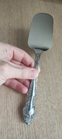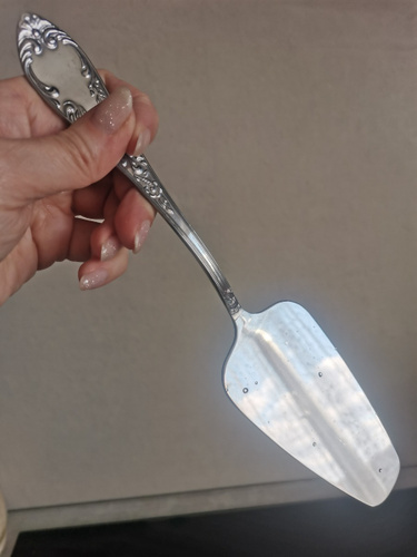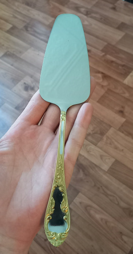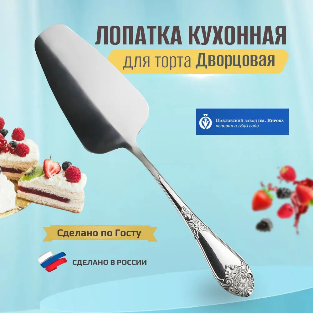 Лопатка для торта и пирожных Дворцовая - 1шт. Лопатка выполнена из высококачественной, пищевой, нержавеющей стали AISI 430, прочная, не гнется, имеет длительный срок службы, отлично сохраняет внешний вид. Такая сталь не изменяет вкус и цвет пищи, не выделяет вредных веществ. Лопатка имеет длину- 23,3 см, ширину- 56, мм. вес 85 гр., и толщину 2,5 мм. Производитель - «Павловский завод художественных металлоизделий им. Кирова», основан в 1890 году. Качество продукции Павловского завода проверено временем и подтверждено декларацией соответствия РОСС RU Д-RU.РА01.В.81265/21. И соответствует ГОСТ Р 51687-2000. Столовая утварь Павловского завода имеется практически в каждой семье. Лопатки для торта имеют рисунок с выпуклостью в симметричном формате и тщательно закругленными краями, обеспечивающими больший комфорт в использовании. Благодаря качественной, зеркальной полировке вручную, изделия сохраняют прекрасный внешний вид на долгое время. Лопатка Дворцовая подходит на каждый день и для праздничной сервировки стола. Каждый предмет удобно держать в руке благодаря оптимальному соотношению веса, длины и пропорций прибора. Ее можно мыть ежедневно в посудомоечной машине. Срок использования столовых приборов не ограничен. Лопатки могут быть отличным дополнением Вашей кухни, а также украсят семейный праздник. Подойдет в качестве подарка на новоселье, годовщину свадьбы, юбилей, день рождения. Набор столовых приборов порадует всю семью своей практичностью, высоким качеством исполнения и презентабельным внешним видом. Он станет отличным подарком маме, папе, жене, мужу, дедушке, бабушке, любимому учителю или другу. Лопатка для торта - это универсальный подарок на любой повод. Такой комплект будет уместен в качестве подарка коллеге или шефу. Красивая и элегантная, она станет настоящим украшением любого праздничного или обеденного стола, а эстетичность столовых приборов удовлетворит запросы даже самых требовательных и взыскательных покупателей.