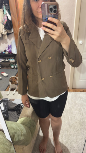 Классный пиджак за такую небольшую цену. Немного маломерит, заранее, брала больше на размер.