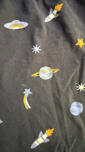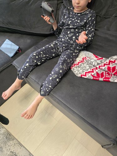 Ребёнок сам выбрал, купили 3 разных, носит не снимая. Стараюсь всегда детям домашнюю одежду выбрать hm, потому что после множества стирок и сушек в сушилке вещи не садятся и не выцветают.
