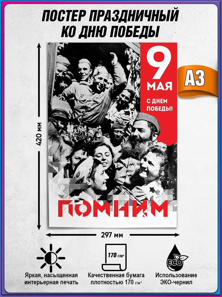 Плакат на 9 мая / Постер ко Дню Победы / А-3 (30x42 см.)