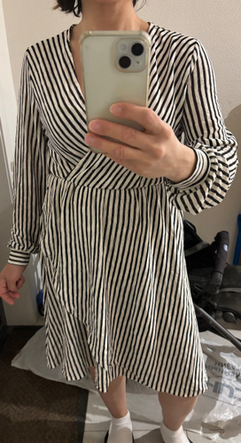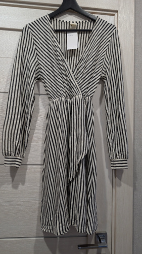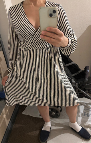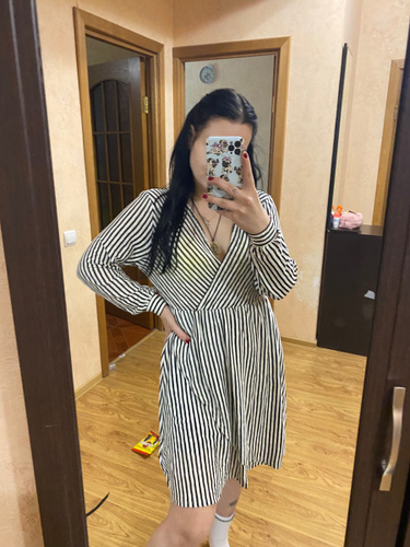 Платье свободное, ткань легкая, тонкая. Размер Xs мне оказался большеват, до колен. На груди сидит не плотно, распахивается. Есть подъюбник. Рост 150, для высоких и худеньких будет отлично. Мне платье нравится, оставила