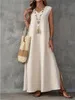 Ожидала большего,но вцелом неплохо. Размер в размер идет. Ткань жатка,хлопок. Сидит свободно. Практичное платье. Рекомендую.(Особенно для беременных будет хорошо,складки,что впереди скроют живот.