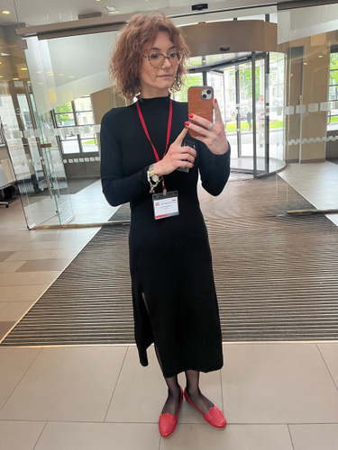 Классное. Село отлично. Мягкое и после деликатной стирки не потеряло форму. Для меня разрез показался высоким..для строгого образа мне не подойдет, но для акцента супер))
