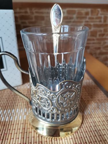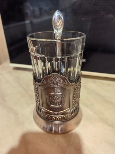 Подстаканник "Комбат"(латунь) никелированный с чернью - 1шт. (средний вес 1 х 163 гр. = 163 гр.) Высота: 95 мм. Диаметр: 68 мм. Стакан граненый 250 мл (закаленное стекло) - 1шт. (высота -110 мм, диаметр -72 мм) Чайная ложка нержавеющая сталь с никелевым покрытием Коробка "Кольчугинский мельхиор" - 1шт. Длина: 95 мм. Ширина: 95 мм. Высота: 125 мм.