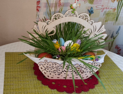 Изделие можно покрасить, покрыть лаком или твёрдым маслом с воском. Отлично подойдет для праздничного стола, для похода в церковь.