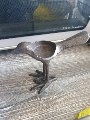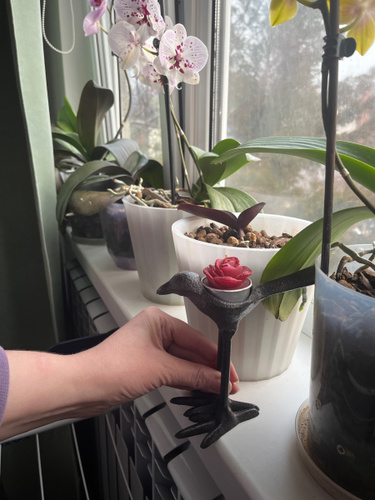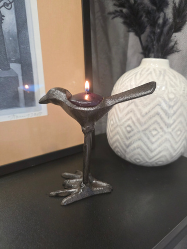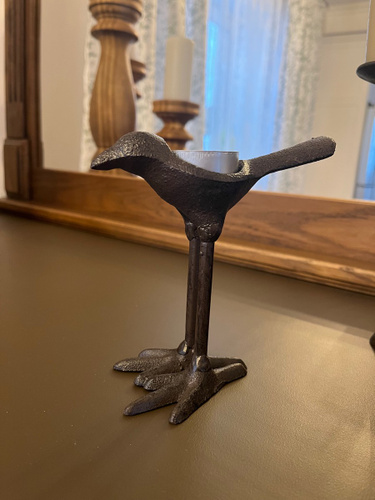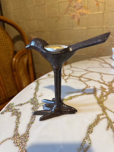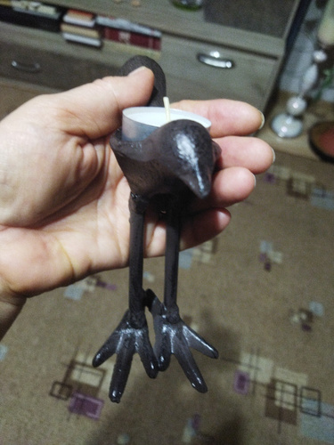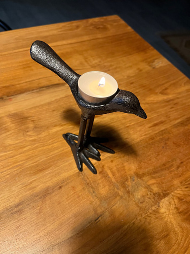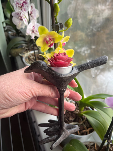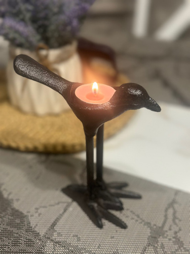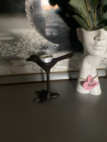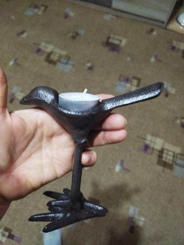 Она такааая класная🥰🥰🥰🥰👍👍👍👍👍👍👍👍👍👍👍 Берите,не пожалеете!!!! Смотрится очень здорово,тяжёлая, удобно брать за хвостик,-идеально вписывается чайная свечка в спинку птички!!🥰 Интерьерная необычная вещица,супер!!!!!! Очень очень хорошо запакованная-в дутыши,всё цело-идеально,белиссимо!!! Подъём настроение на миллион сразу!!!🥳