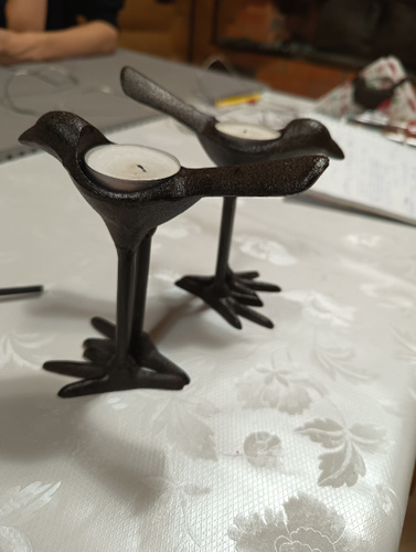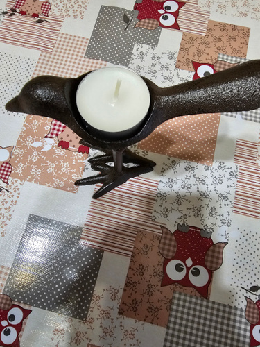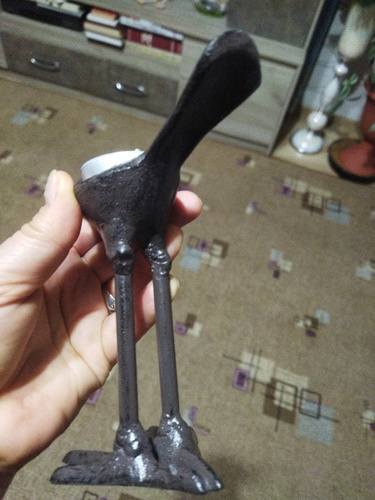 очень милая птичка, но место для свечки или мелочей могло быть поглубже. Не очень аккуратные соединения, (грубоватые, так и хочется убрать "лепёшки").
