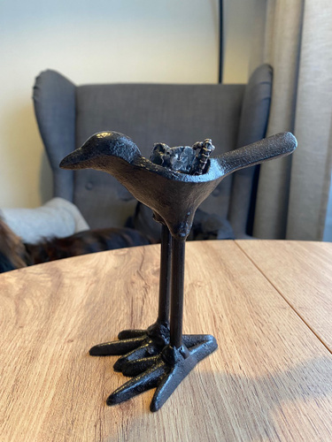 Чугунный подсвечник BirdyПодсвечник Birdy выполнен в виде птички, которая твердо стоит на поверхности, что исключает опрокидывание изделия. Декор для дома, изготовленный из чугуна, прекрасно впишется в любой интерьер.Много примененийКстати, необязательно использовать подсвечник Birdy по своему прямому назначению. Ведь, его можно установить на прикроватную тумбочку и отвести ему роль временного хранилища украшений. Например, серёг и колец. Чугунный подсвечник в виде забавной птички – отличная идея для подаркаХороший подарок для двоихЕсли приобрести два экземпляра, то такой комплект может стать свадебным сувениром, как для молодоженов, так и для тех, кто прожил в счастливом браке много лет!Чугун, высота 15смЦена указана за 1 подсвечник.
