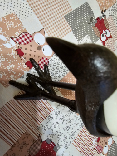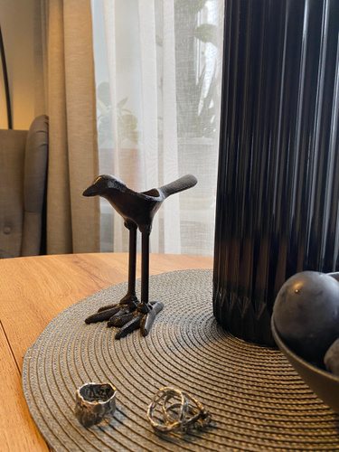 птичка интересная. цвет темно коричневый, тяжелая. это не стильная статуэтка, сделана грубовато, это что нужно для меня!!!