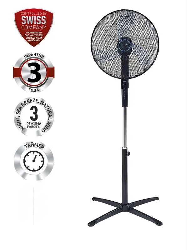 - Крестообразное основание – 2 элемента - Винты для крепления стойки к опоре – 4 шт. - Защитные кожухи лопастей – 2 шт. - Лопасти – 1 шт. - Блок электродвигателя и блок управления в сборе – 1 шт. - Стойка – 1 шт. - Пульт дистанционного управления – 1 шт. - Руководство по эксплуатации - 1 шт - Гарантийный талон - 1 шт - Список сервисных центров - 1 шт - Упаковка - 1 компл.