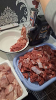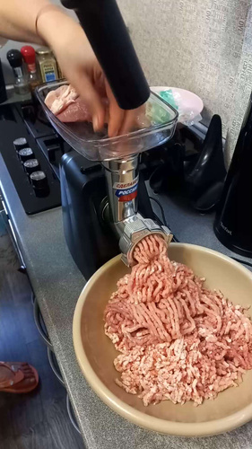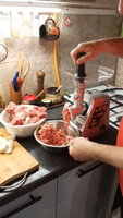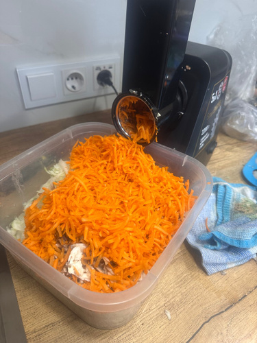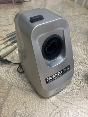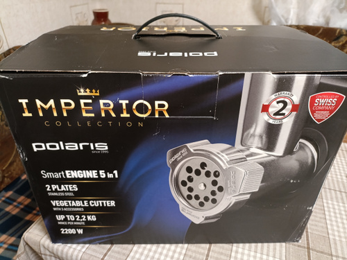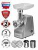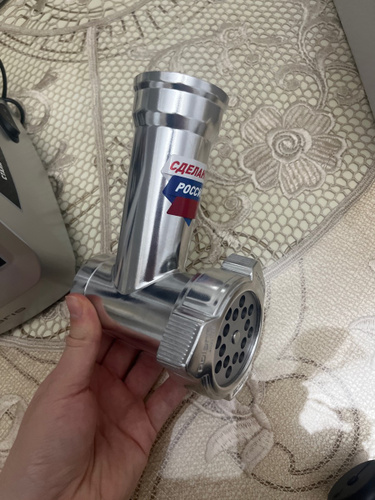 мясорубка, 2 диска (5 мм, 7 мм), овощерезка 3 насадки (мелкая терка, крупная терка, насадка для шинковки), лоток для мяса, пластиковый толкатель, руководство пользователя
