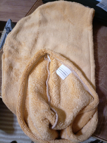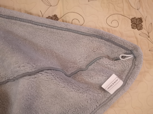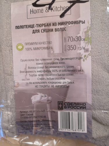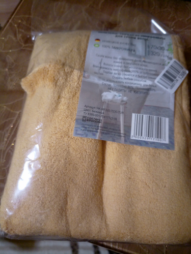Впитываемость материала — 560% от собственного веса. За несколько минут впитает воду из влажных волос, и они будут готовы к сушке и укладке!