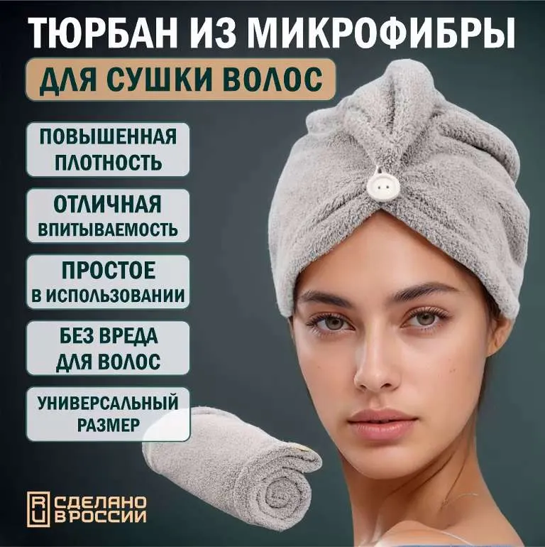 Чтобы волосы оставались красивыми и здоровыми, а уход за собой был простым и приятным, выбирайте наше полотенце-тюрбан! Специальное плетение волокон микрофибры позволяет быстро и бережно удалять влагу из волос, не повреждая их. А особое надевание на голову делает использование чалмы легким.