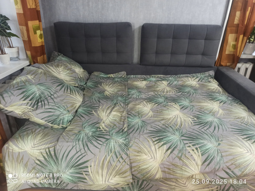 В общем неплохой комплект постельного белья, приятная расцветка, но вытянута нитка в наволочке, что может впоследствии образовать дырку. Также местами неровный материал, по краям простыни по большей части.