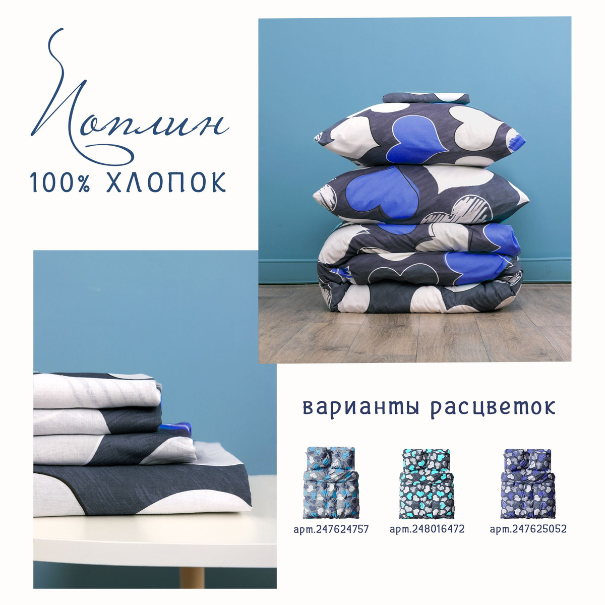 Комплект постельного белья Евро GALTEX Нежность поплин Романтика синий1