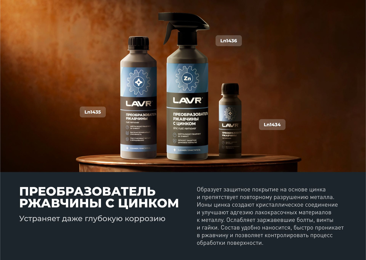 Преобразователь ржавчины с цинком LAVR, 500 мл / Ln1436