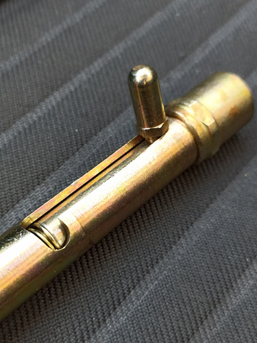 1. Взвести ударный механизм путем перемещения штифта по продольному пазу в крайнее положение с поворотом в поперечный паз (в затвор).