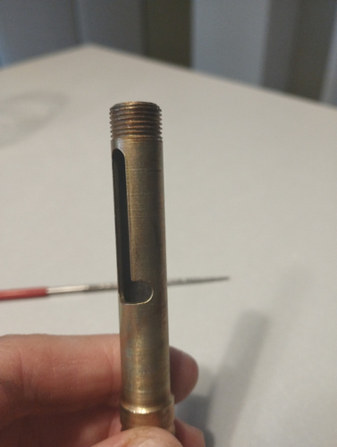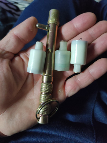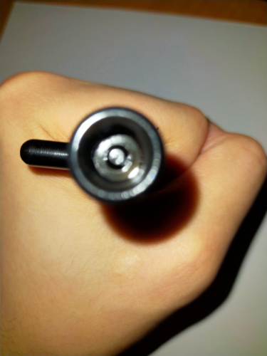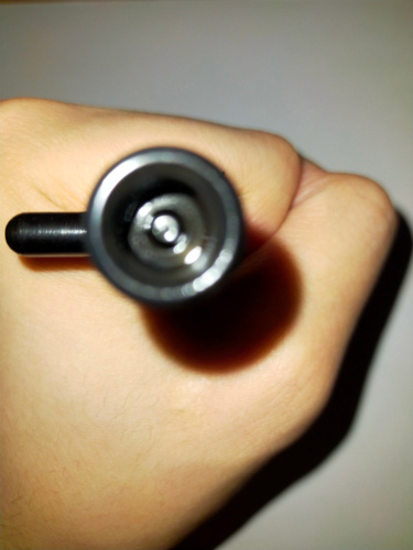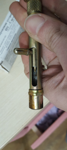 2. Удерживая пальцем ручку затвора, вкрутить резьбовой патрон в пусковое устройство до упора, с небольшим усилием.