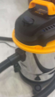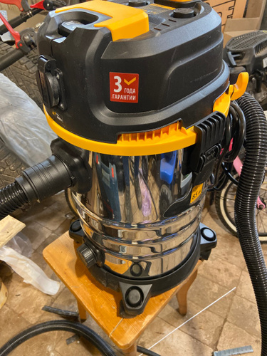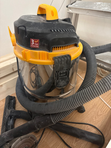 Пылесос строительный Denzel SVC15 28201 мощностью 1200 Вт, с баком объемом 15 л и шлангом длиной 2 м, предназначен для уборки бетонной, кирпичной пыли, опилок, стружки, также предусмотрена функция сбора воды. Пылесос используется во время проведения строительных и ремонтных работ, будет полезен для поддержания чистоты в мастерской, гараже, производственном помещении.