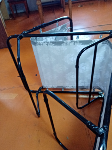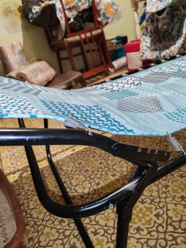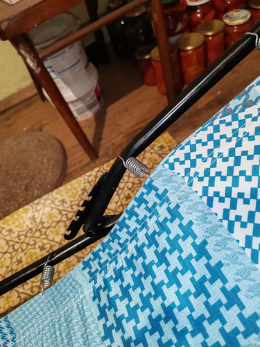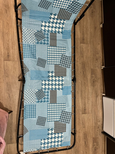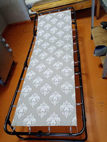 Основание раскладушки -силовая ткань, которая крепится к каркасу при помощи стальных пружин. Очень похожа на раскладушку, которая продавалась в советское время, но только каркас стальной, а не алюминиевый.