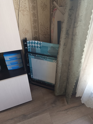 Раскладушка компактна в сложенном виде и легко поместится в шкаф или в машину.