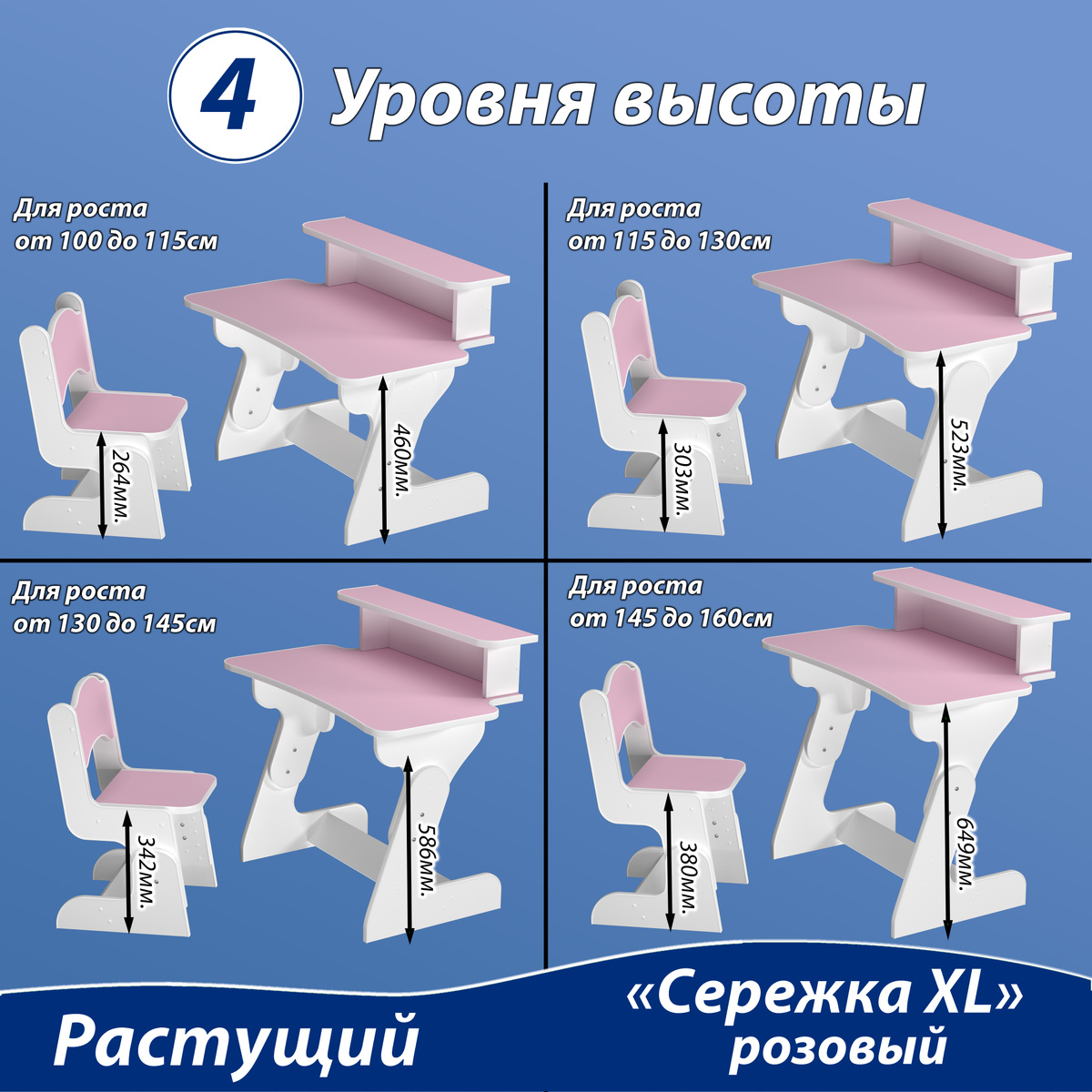 1. Стол детский растущий в разобранном виде. 2. Стул детский растущий в разобранном виде. 3. Фурнитура для сборки. 4. Инструкция по сборке.
