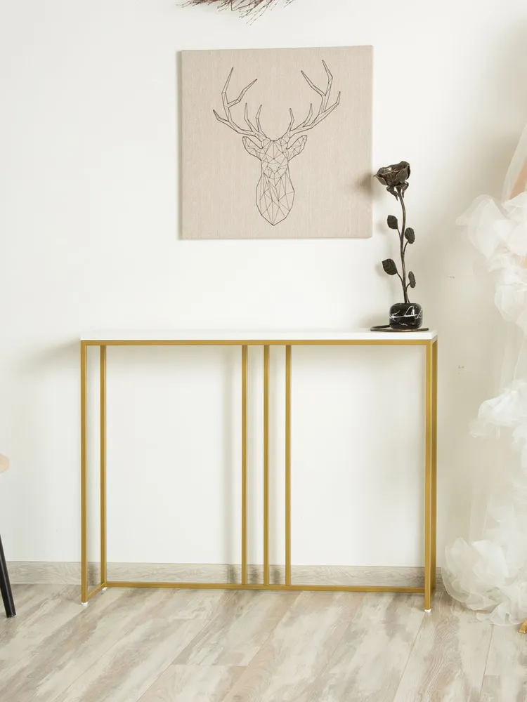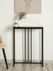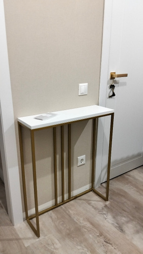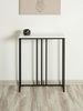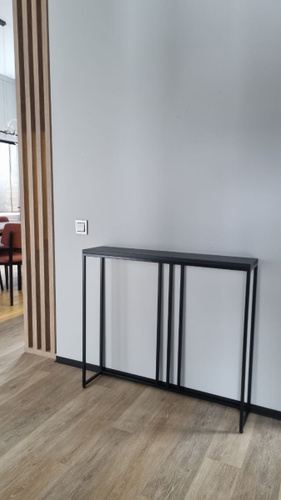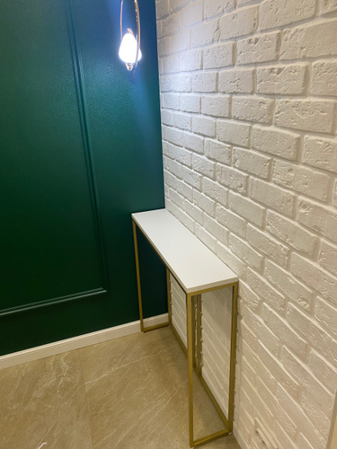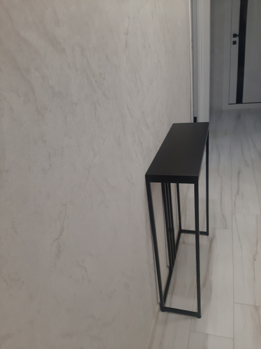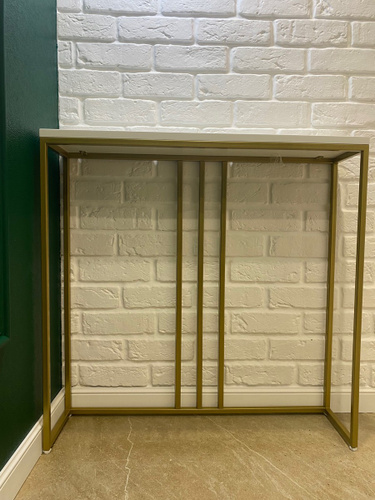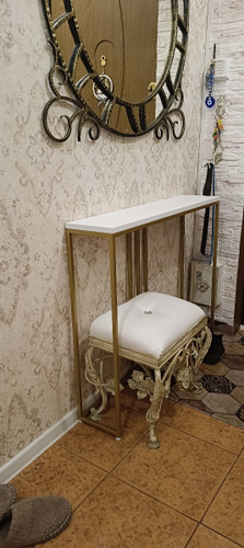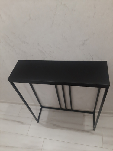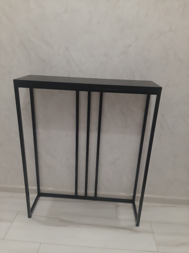 Стильный консольный столик, сочетающий в себе прочность и элегантный дизайн. Изготовлен из цельносварного металлического каркаса, окрашенного стойкой порошковой краской, которая надежно защищает и гарантирует долговечность.