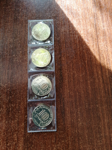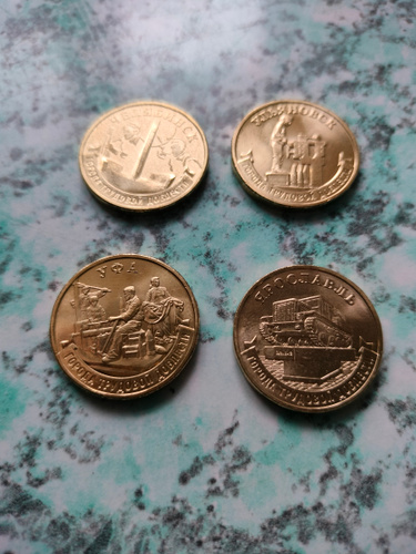 Представляем вашему вниманию уникальную коллекцию монет России - набор из четырех монет номиналом 10 рублей, выпущенных в 2025 году. Эти монеты являются частью серии "Города трудовой доблести" и представляют собой памятные и юбилейные монеты, которые находятся в обращении.