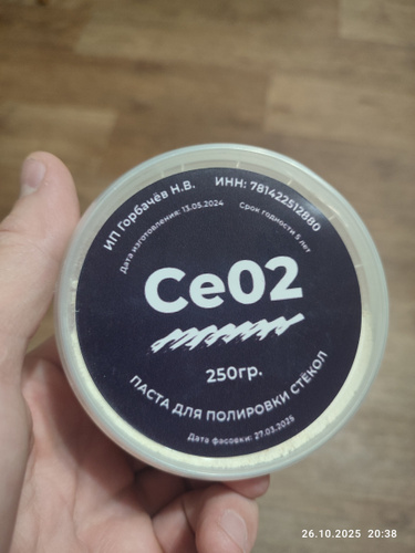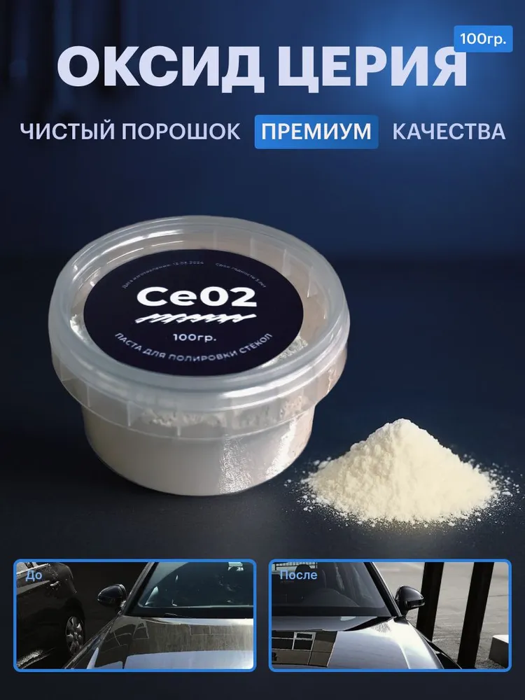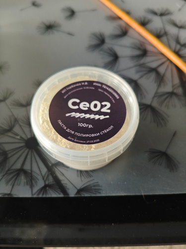Оксид церия 99,99%. Фасовка 100 гр. Данная полироль экономней чем любая полировальная паста, разводится с водой ориентировочно 1:1 (2). Размер частиц 1-3 мкм. Является чистым абразивным средством без примесей. Цвет абразива зависит от партии, но состав и качество не меняется. Идеально для полировки стекол, удаления окалин, мелких царапин, полировки кромки, очистки от помутнений и загрязнений, для прозрачности, фацета и других случаев. Применяется в полировке: 1) автомобильных и других стекол 2) стеклянных фар 3) зеркал 4) витрин 5) твердого пластика 6) стеклопакетов 7) аквариумов, террариумов 8) мрамора и гранита 9) линз 10) серебро, золото 11) металлических поверхностей и пр. Способ приготовления полировальной пасты: 1) Смешать (1 часть порошка к 1 части воды) для получения сметанообразной пасты. 2) Перемешивать до получения однородной массы. При работе с полировальной пастой рекомендовано использовать фетровые спиральные или шерстяные круги. Срок хранения до 5 лет.