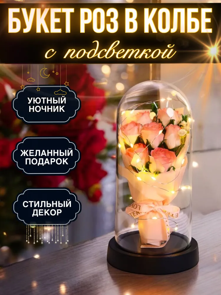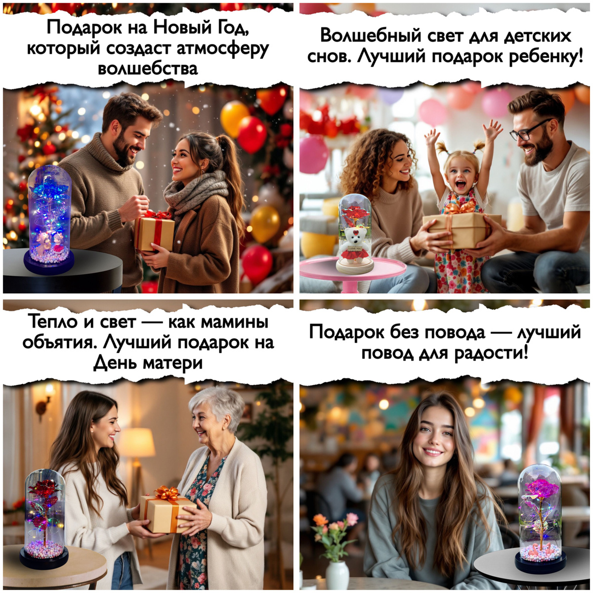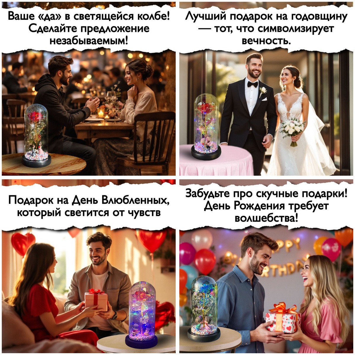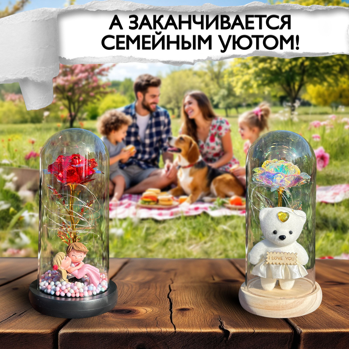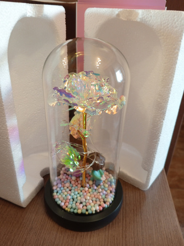 Уникальная роза с в колбе из закалённого стекла с чарующей подсветкой. Подарочная коробка (можно сразу дарить, а не искать красивую упаковку).