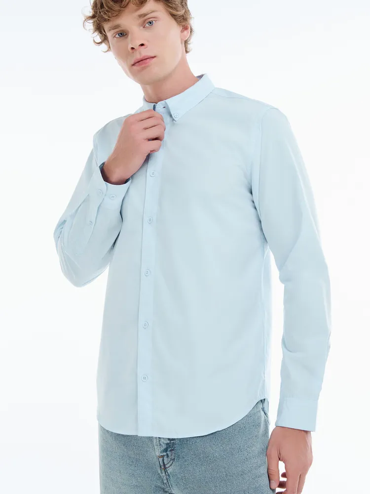 Независимо от того, вы посещаете офис, учебное заведение или просто проводите время на улице, эта классическая голубая мужская рубашка от бренда ТВОЕ обязательно подойдет для любого случая.