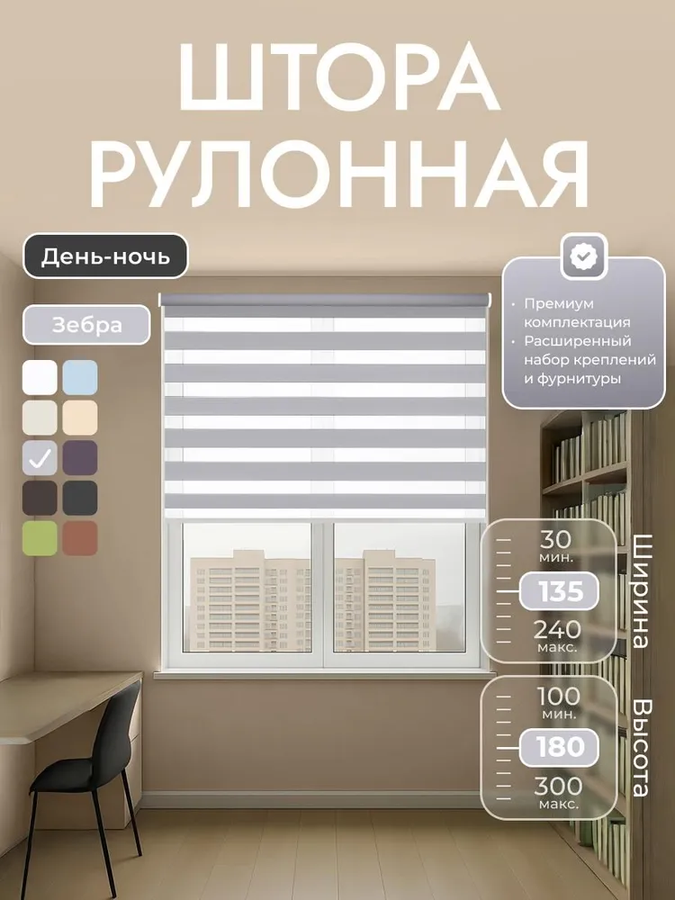 Рулонная штора день/ночь (зебра) 135x180 см от Унистайл.