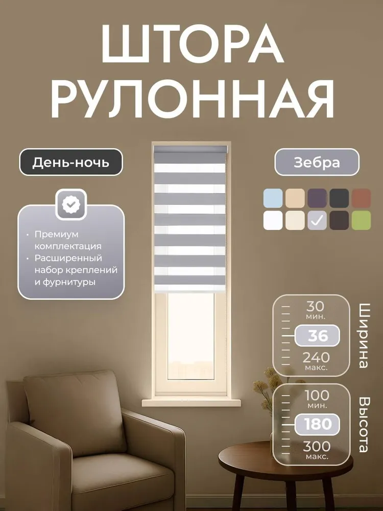 Рулонная штора день/ночь (зебра) 36x180 см от Унистайл.