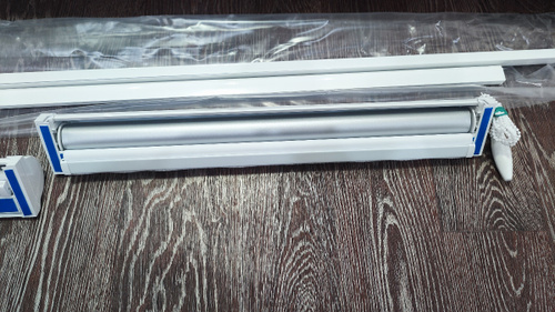 Кассетная рулонная штора УНИ-2 на трубе 17мм 1 шт (двусторонний скотч уже наклеен на места установки), 2 вертикальные металлические направляющие с наклеенным двусторонним скотчем, механизм управления с пластиковой цепочкой 1шт, инструкция по установке 1 шт.