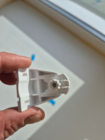 5. Кронштейны крепления, прилепленные на скотч, жалюзи снимаю с фиксатором. После этого кронштейн фиксируем саморезами к створке.