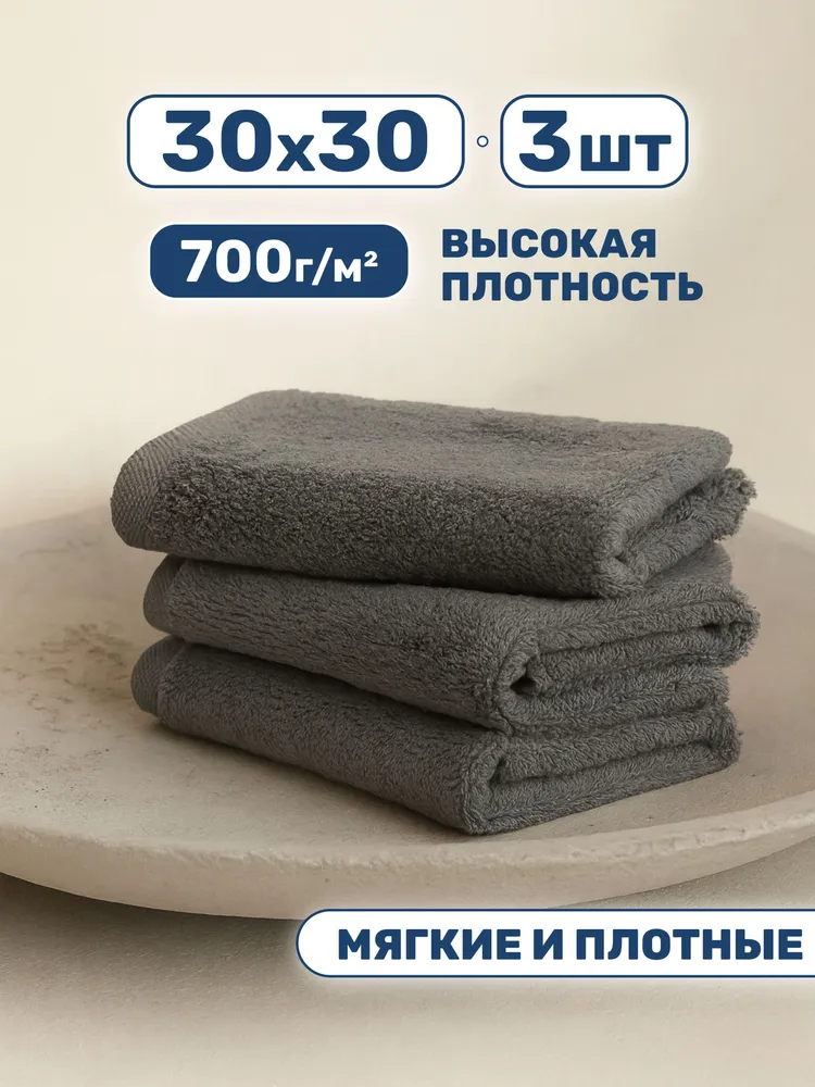 Салфетка махровая для рук, лица размером 30х30см - 3 шт.