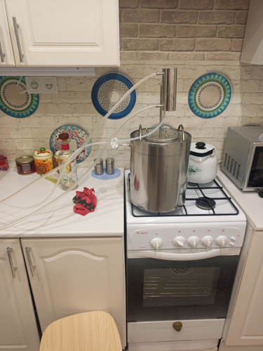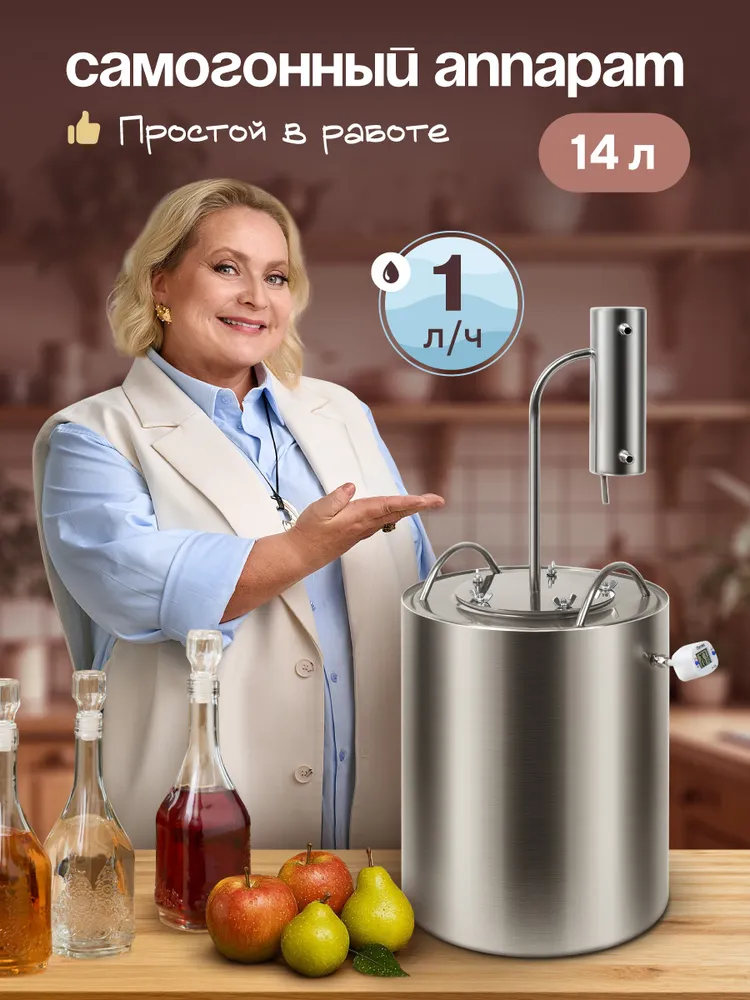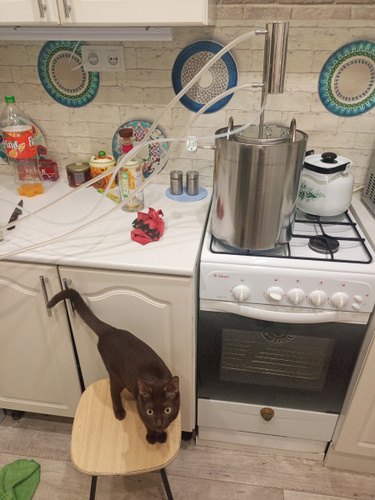 Охладитель - 1 шт; Гайки барашек М6 - 5 шт; Силиконовое уплотнение на бак - 1шт ; Термометр электронный - 1шт; Бак “Компакт” - 1шт; Ниппель М8 с цангой для термометра - 1шт; спиртометр - 1шт; 2 шланга ПВХ по 1,5м. Дивертор - 1шт.