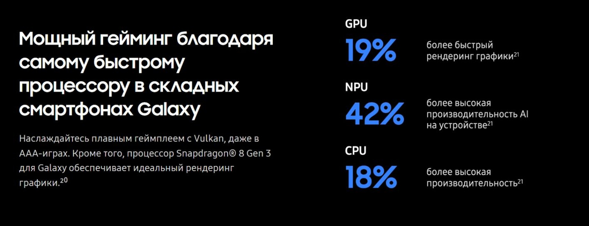 Galaxy Z Fold6 - мощность ПК в вашем кармане. Мощнее, чем когда-либо, со сверхплоским, суперпроизводительным экраном. А теперь еще и с Искусственным интеллектом Galaxy AI на складных смартфонах.