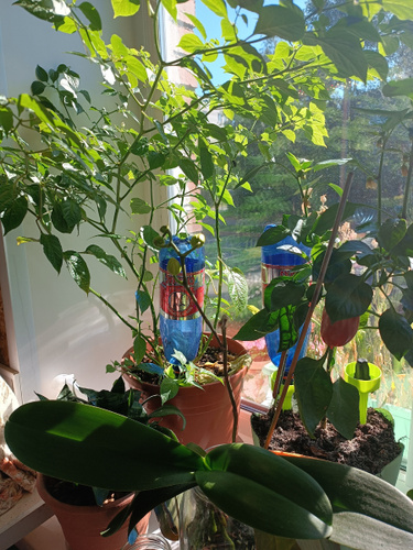 Посадка семян в почву на глубину около 1 см, присыпать землей. После посадки хорошо пролейте перец чистой водой. Накройте пленкой для создания парника. Проращивать при температуре +25-30С (тепло обеспечить электроподогревом), пока не появятся первые всходы. Так же дополнительно обеспечить дополнительный свет от ламп не менее 12-16 часов в сутки.