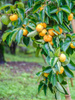 Плоды - округлые однокостянки, похожие на сливу, с сизым восковым налётом, диаметром 12 мм, по вкусу терпко-кислые, созревают поздно. Первое плодоношение происходит в возрасте 2-4 лет.