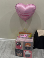В наборе: -шар фольгированный, розовое сердце, 45см, с надписью "С днём рождения, ИМЯ!"; -трубочка для надувания;