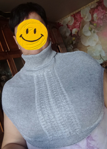Связан аккуратно, машинная вязка, нить тонкая , к телу приятная. Издение тянется хорошо, но расширение на плечи недостаточное, приходится все время поправлять, сползает к шее .На ребенка будет хорошо.Возможно мне не по размеру.